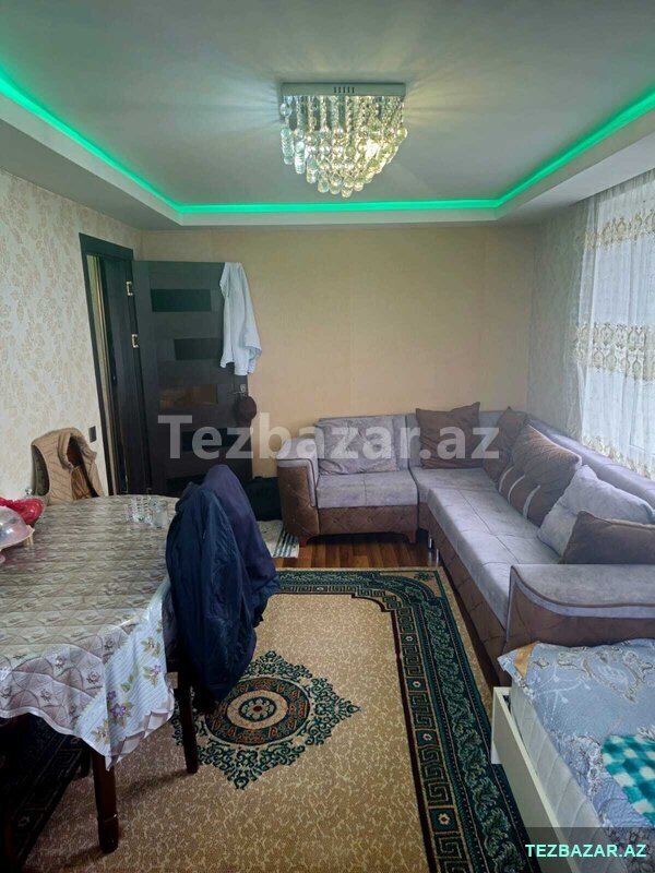 276999 Azn Sabuncu r-n, Bakixanov (Razin) qes., Idman Liceyin yaxinliginda, 9/3 mertebesinde, sahesi 72 kv.m.kiyev layiheli, ela temirli, dowemesi-parket(mozaika) cox seligeli, merkezi istilik sistemi, 3 otagli +( eyvani -1 otag
