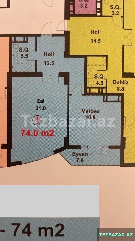 Sabunçu ray, Yavər Əliyev küç, Yeni Tikili "UĞUR 2" yaşayış kompleksində yerləşən, 19 mərtəbəli binanın 17-ci mərtəbəsində yerləşən, ümumi sahəsi 82 kv.m təşkil