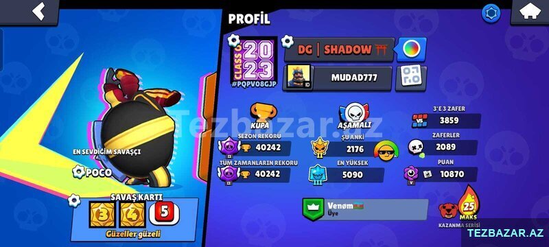 80 AznBrawl Stars hesabı satılir 93 kakater Nadir Kostümler Emojiler 63 K Kupa (PUBG BARTER edilir)