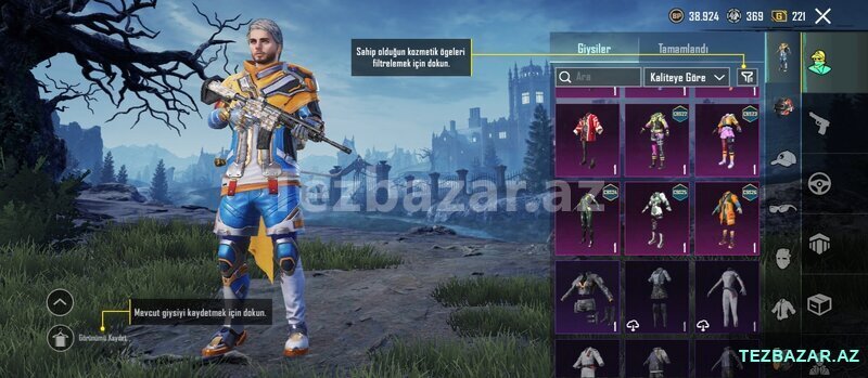 35 destant geyimlər ver 10 dənə silah kaplaması və çanta kaplaması birde araba kaplaması vardır
