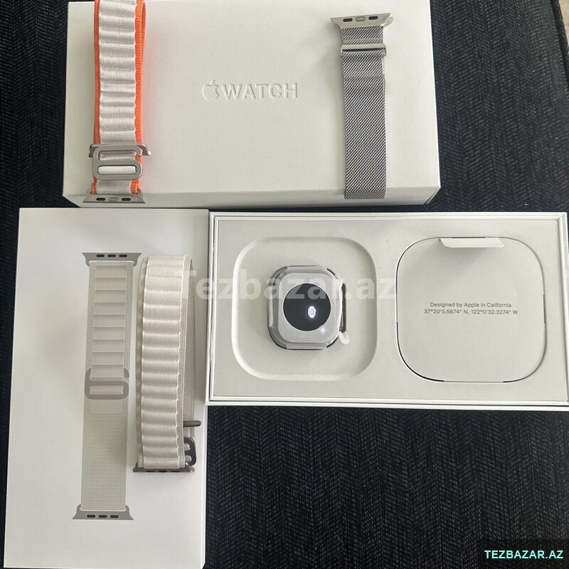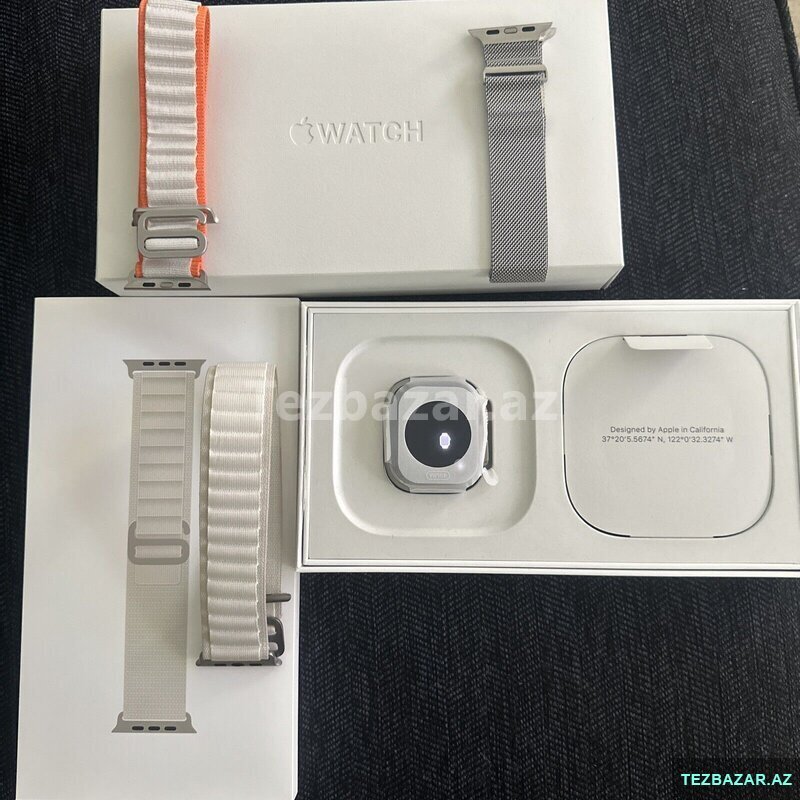 Apple Watch Series 9 (alüminium korpus) – 45 mm. Pil faizi 100% . Yenidir, adaptr və 3 dənə üstündə qayış mövcuddur