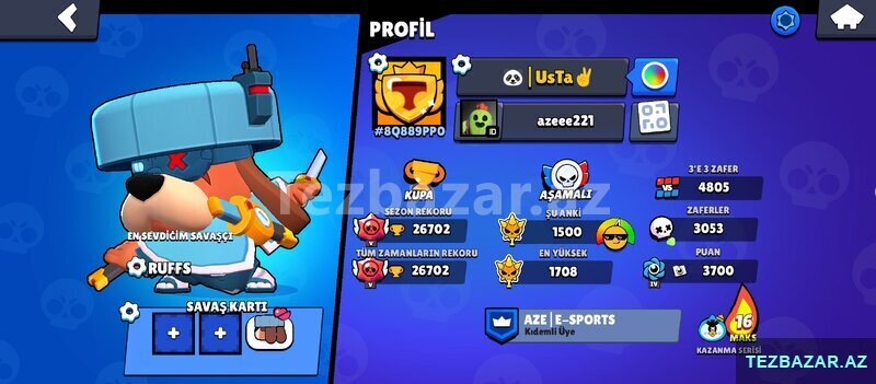 4900 Azn27.000 KUPALI BRAWL STARS HESABI + COC HƏDİYYƏLİ! 2020-ci ildən aktiv, müntəzəm oynanmış, etibarlı hesab. 27.000 kupa, aktiv mövsümlərdə davamlı irəliləyiş. 72 açıq xarakter, populyar və nadir döyüşçülər daxil.