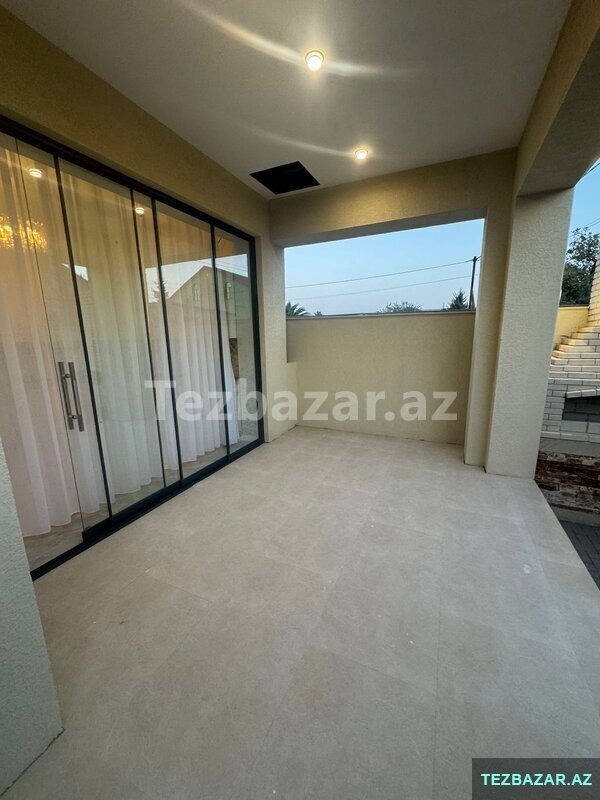 Həyəti yaşıllıqla əhatə olunub. 2 maşınlıq saxlama yeridə var .