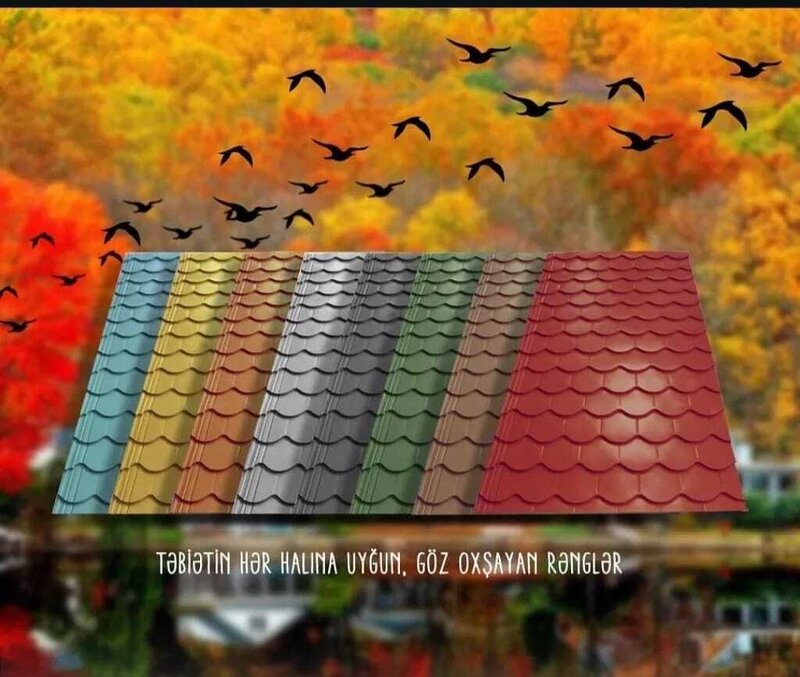 Şirkət2.8 Azn Salam Hörmətli Müştərilər Hər növ və rəng uyğun ÇEREPİSTA və PROFNASTİL SATIŞI - MODELLƏRİ Profnastil MONTERREY ADAMANTE RUNO VİKTORİYA Almaniya -Euroruruk Türkiyə -Tatasteel Finlandiya -Ruukki Ruminiya -Bilka Ukraniya.