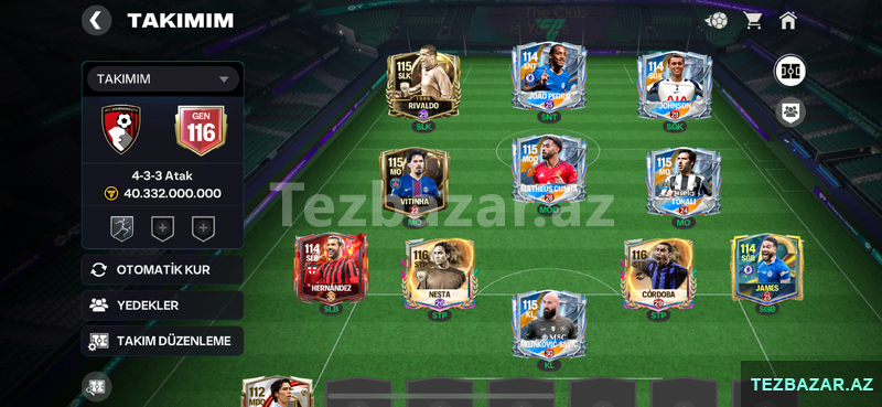 50 Azn Salam, hesab təcili satılır. Tək bağdı, tər-təmizdir. Oyuna pul vurlub. Yeni gələn ən güclü hücumcu 108 Luis Suarez çıxarılıb həmçinin 107lik L.Suarezin də kartı var. Demək olar oyunun ən güclü oyuncuları məndədi, Ən