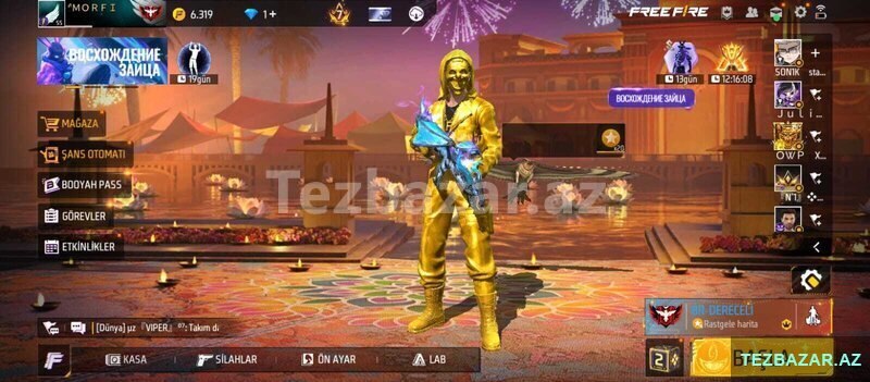 8 AznOyundan başı çıxanlar bilər nə var nə yox 10 madalya, Çoxlu Arcane silah 6 bıçaq, 2 əlcək var .Hesaba 25k + gold vurulub, Gold pass hər sezon açılıb və hal hazırda yeni gələn sezonda aktifdir və kasılıb.205