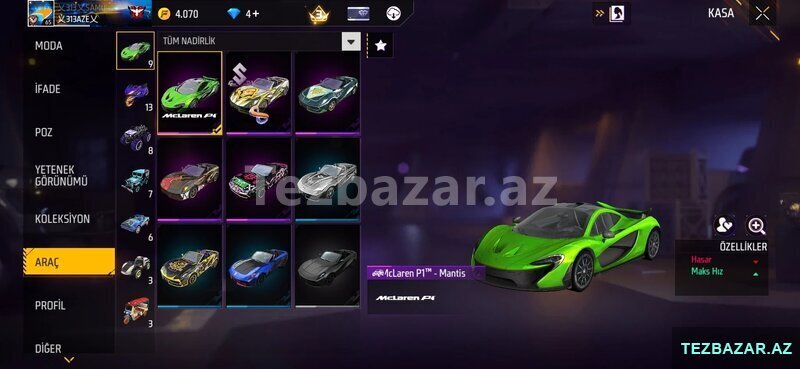 Detallı, rəngarəng skinlər, nadir animasiyalar və unikal nəqliyyat görünüşləri ilə zəngin hesab axtaranlar üçün ideal.