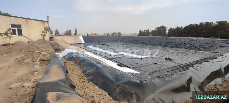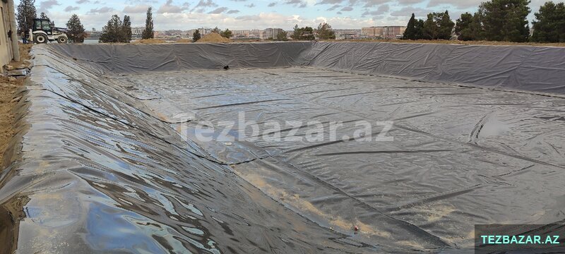 HDPE geomembran 1.5 mm – hovuz, süni göl, su anbarı, poliqon və su/kanalizasiya layihələri üçün izolyasiya örtüyü.