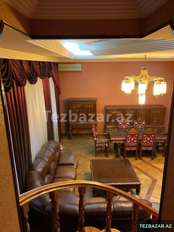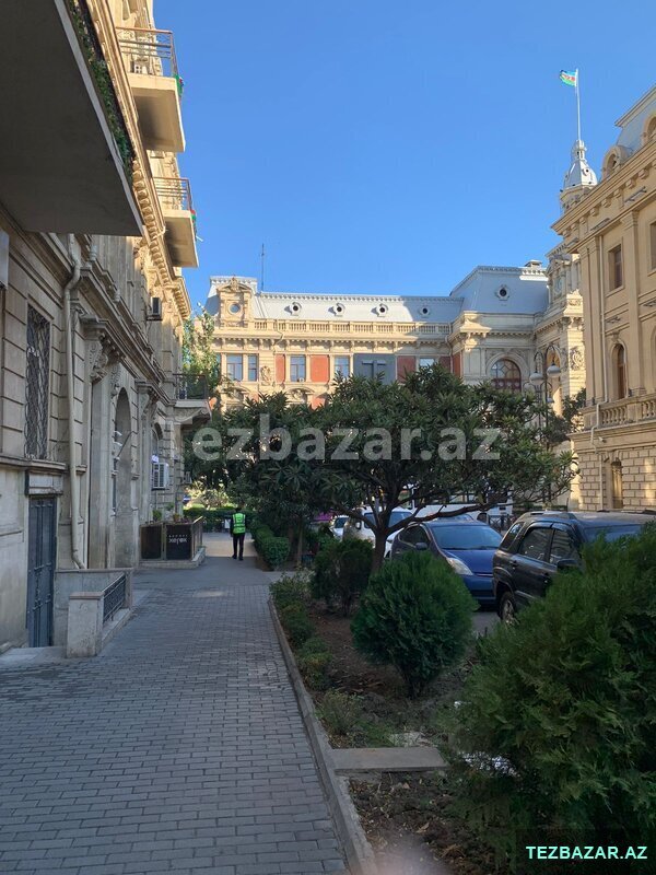 Mənzilin yerləşdiyi bina şəhərin mərkəzindəki memarlıq abidəsidir, "İçərişəhər" metro stansiyasından iki dəqiqəlik məsafədə, Bakı Şəhər İcra Hakimiyyətinin binasının yaxınlığında yerləşir. Dupleks mənzil: bir mətbəx, bir qonaq otağı, üç yataq otağı, iki sanitar qovşağı, hündür tavanlar, kamin, klassik üslubda keyfiyyətli təmir və kodlu giriş qapısı. Qismən əşyalı satılır. ___ Квартира расположена в архитектурном здании в центре города, в двух минутах от станции метро "Ичери-Шехер", рядом со зданием Исполнительной власти города Баку. Дуплекс: одна кухня, одна гостиная, три спальни, два санузла, высокие потолки, камин, качественный ремонт в классическом стиле, входная дверь с кодовым замком. Продается частично меблированной.