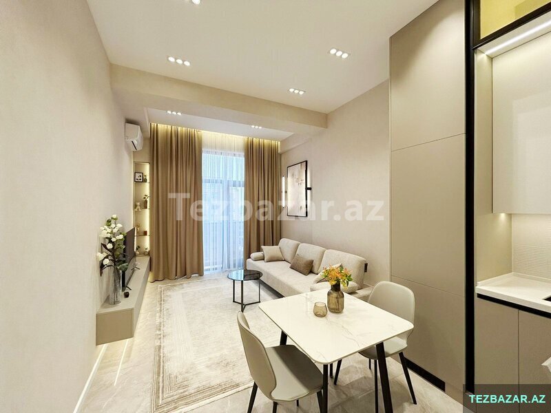 3 otaqlı studiya tipli, zövqlə təmir olunmuş və tam əşyalı mənzil