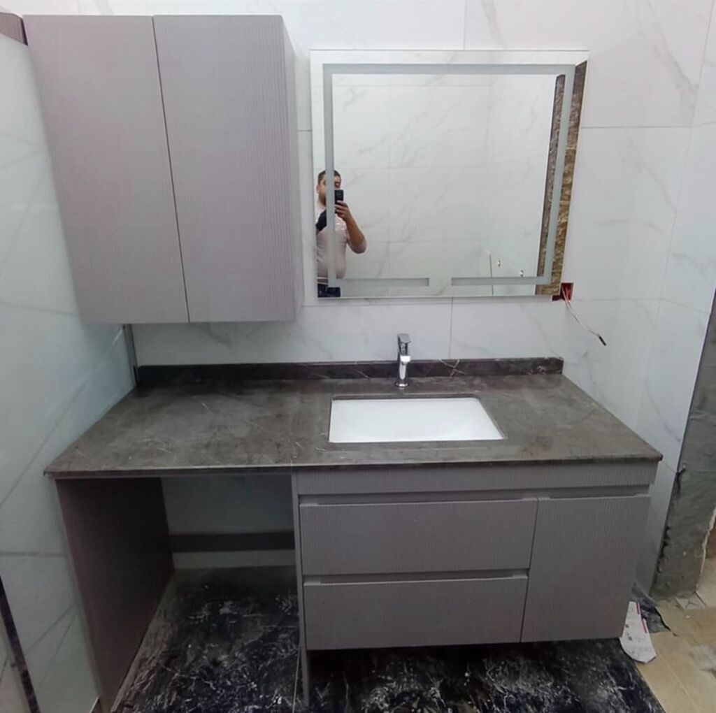 Mağaza750 Azn Qəşəng dizaynlı, divara montaj edilmiş hamam dolabı. Geniş ağ rəngli üst hissəsi və neytral çalarlı qabaq hissəsi olan bu dolab, dəsmal və digər əşyaları saxlamaq üçün əlverişlidir. Müasir hamam otağı üçün praktik və