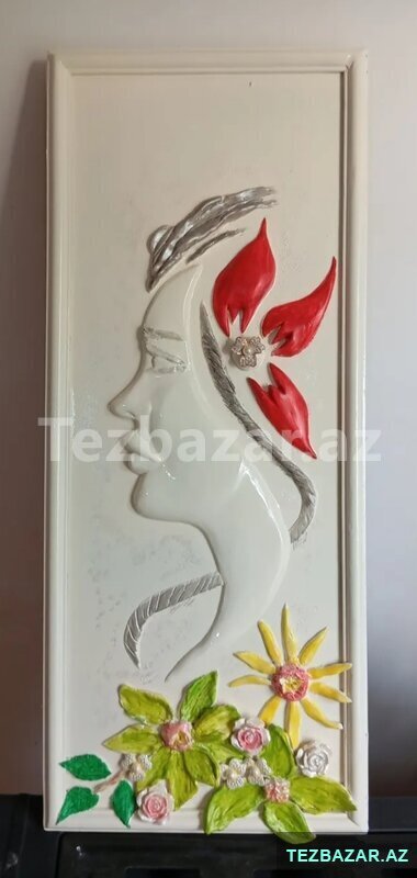 - Material: gips/keramika əsaslı relyef, akril boyalarla işlənib
