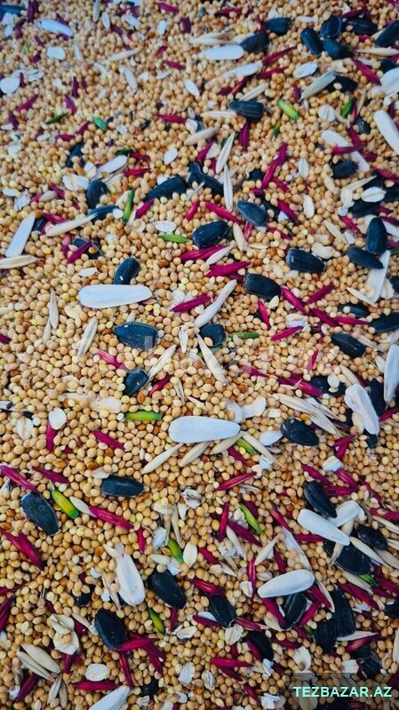 Tərkibi: darı, günəbaxan tumu, vələmir, kətan toxumu, yulaf