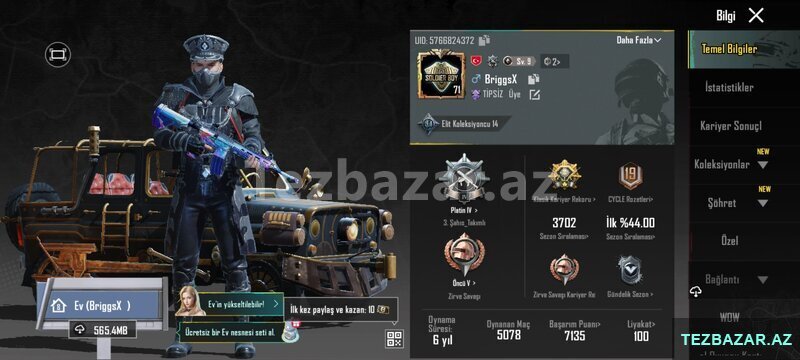 15 Azn Hesabı özüm açmışam, heç bir problemi yoxdur, ban yemeyib, hesabın kodu gmail i hər bir şeyi məndədir. İstəsəniz hesabın gmail ini öz gmail iniz ilə dəyişdirə bilərsiniz. Hesabda kuronomi, yitik, faz koruyucu vandal,