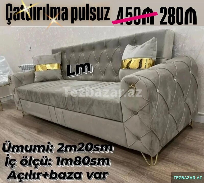 Divan Müasir dizaynla . ENDİRİMLƏ Qiymət : 280 ₼ . Yeni və sifarişlə . Kitab kimi açılır+baza var . Ölçü: 2m20sm iç ölçü :1m80sm . 2 ədəd yastıqça hədiyyə . Rəng seçimi sərbəst . Material keyfiyyətli Tür [читат далше]