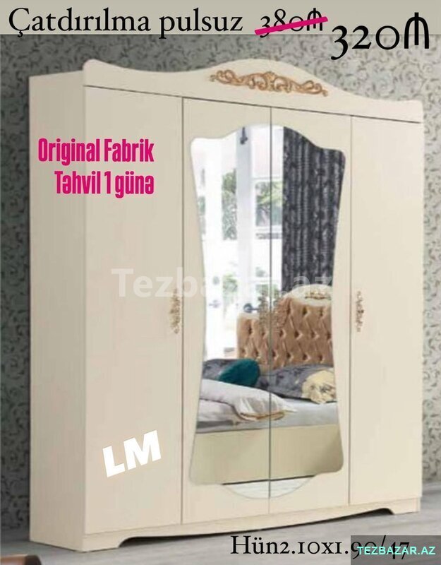 DOLAB 4 qapılı FABRİK İSTEHSALI . Qiymət : 320₼ . Mebellərimiz yeni, upakovkada, və 100%keyfiyyətlidir. SEX MALI DEYİL . Çatdırılma+quraşdırılma şəhər daxili pulsuz. Elani Sreen Edib Whatcapa Göndərin [читат далше]