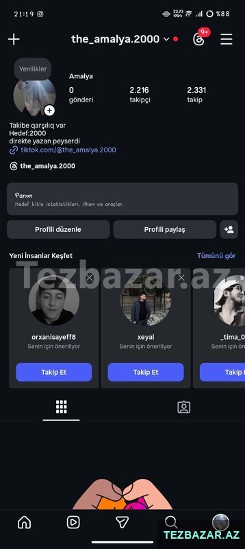 İnstagram seyfəsi satatılır 2216 takibçili real alıcılar əlaqə saxlasın