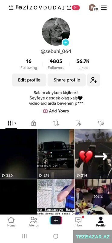 45 Azn Salam aleykum hesabin kesfeti normaldir atacaginiz seyden asilidi reklam ucun uygun hesabdir Canli yayinlari qesey adam gelir Jeton seviyesi 13 dur Ciddi alcilar yazsin xayis edirem (SAXTA JETON PANEL DIGER SEYFELERIN