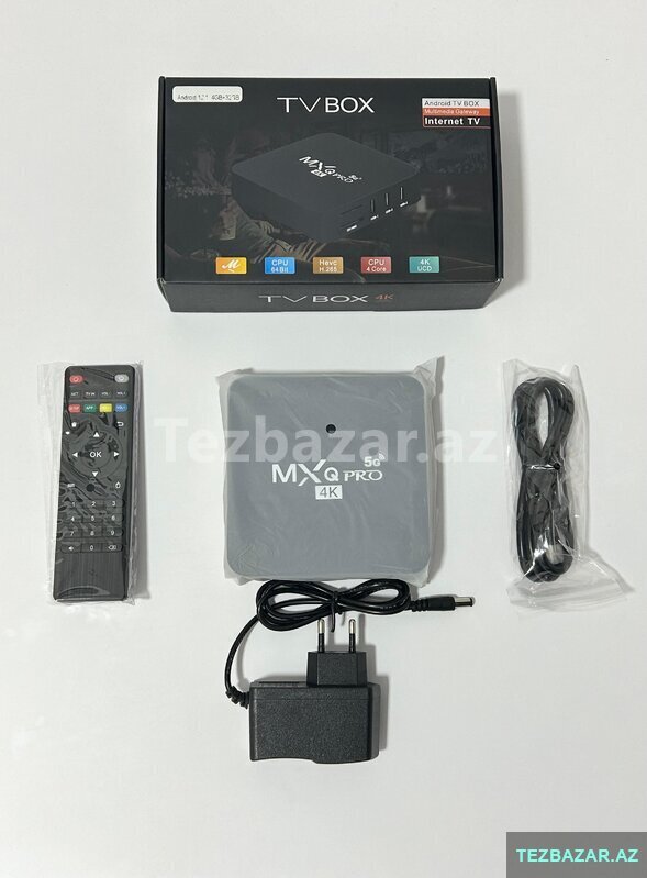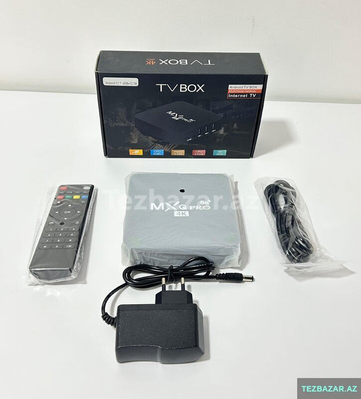 TV Box MXQ Pro – Android 12.1 versiyalı, 4GB+ 32GB yaddaş, 5G və 4K dəstəkli original cihaz. Məhsul yenidir və işləmə sürəti idealdır.