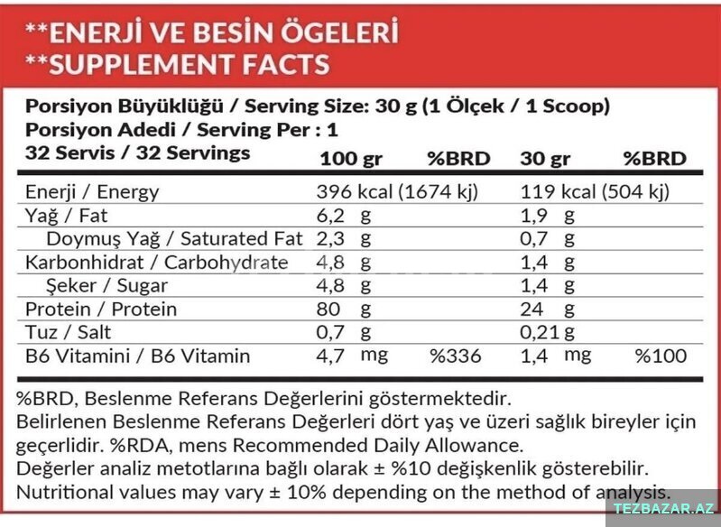 • Porsiya: 30 q (1 ölçək)