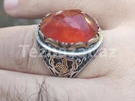 Salam Qırmızı Yəmən əqiqi orginal natural təbii üzük 14 məsum adi yazilib ərəbcə birdə Bismillahir Rhmanir Rəhim yazılıb üzük də